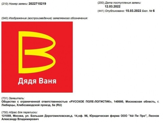 Однако заявку от их имени в Роспатент кто-то все-таки подал. В холдинге заявили, что Ruspole brands владеет торговым знаком «Дядя Ваня», в который входят заведения общественного питания. В связи с этим, лицам, использующим знак «Дядя Ваня» в своих изображениях в сфере услуг общепита, может быть предъявлена претензия о выплате компенсации.