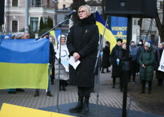 Актриса театра Дайлес, кавалер ордена Трех Звезд Лилита Озолина (74 года), одна из самых любимых и обаятельных латвийских актрис в России на протяжении многих лет, также была замечена на пикете у здания Посольства России в Риге.