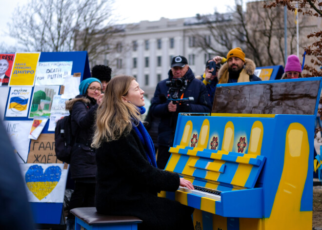 В воскресенье, 27 марта, по инициативе музыканта Катрины Гупало в рамках специальной акции в парке Кронвалда в Риге напротив посольства Российской Федерации было размещено пианино "УКРАИНА".