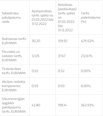 В свою очередь жителей Резекне с 1 мая ждет серьезное повышение стоимости тепла – почти на 363%, с нынешних 42,80 евро за мегаватт-час до 198,14 евро за мегаватт-час.