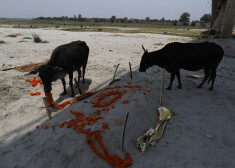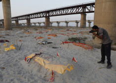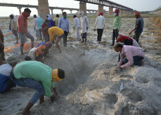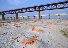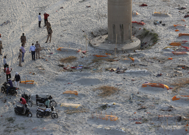 Неглубокие захоронения на берегу реки Ганг в Индии