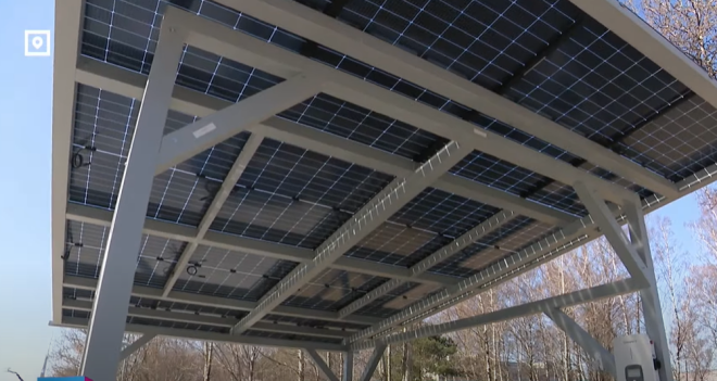 Навес из солнечных панелей — это и крыша, и источник энергии. Предполагается, что под ним можно оставить электромобиль — и за день он будет полностью заряжен. Мощность панелей — почти 6,5 КВт. Это первый прототип такого навеса в Латвии, пишет rus.lsm.lv.