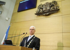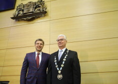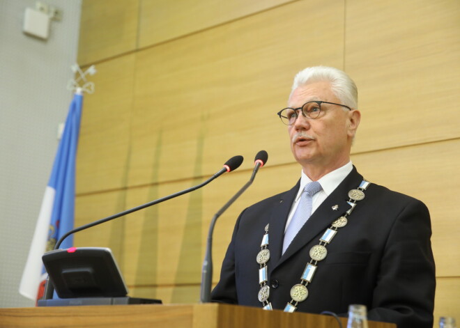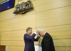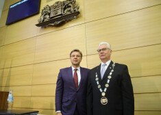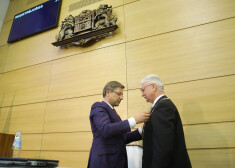 Нил Ушаков передает цепь мэра Риги Дайнису Турлайсу
