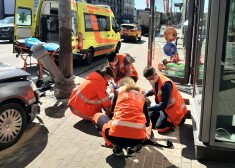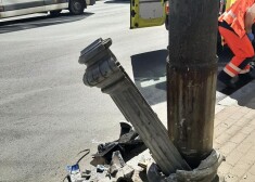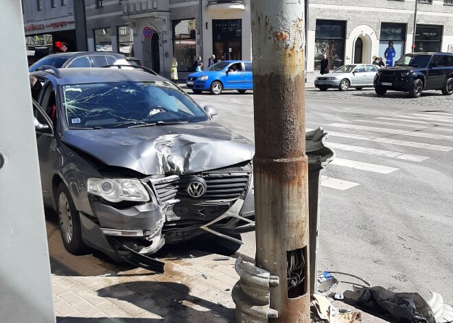 Сегодня в Риге (Латвия) на углу улиц Бривибас и Дзирнаву произошло столкновение автомобиля и фонарного столба. Как видно по кадрам очевидцев в Twitter, одному из пострадавших потребовалась медицинская помощь.