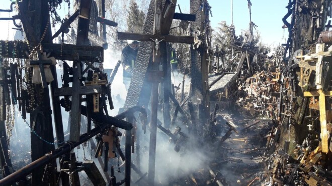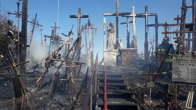 На знаменитой Горе Крестов в Литве вспыхнул огромный пожар