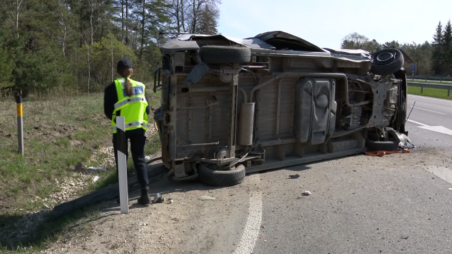 Рано утром на шоссе Сигулда-Рига некий водитель попал в аварию - управляемый им микроавтобус марки Renault Trafic съехал с дороги, несколько раз перевернулся и врезался в дорожный знак, сломав его. Сам автомобиль остался на краю проезжей части.