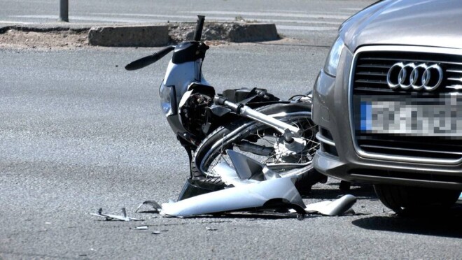 Неудачная встреча двух участников дорожного движения в середине перекрестка произошла вчера в первой половине дня на улице Дарзциема. Мотороллер врезался в переднее правое крыло Audi. Фактически автомобиль выехал перед более уязвимым участником дорожного движения, повернув налево с улицы Дарзциема на улицу Сеску.