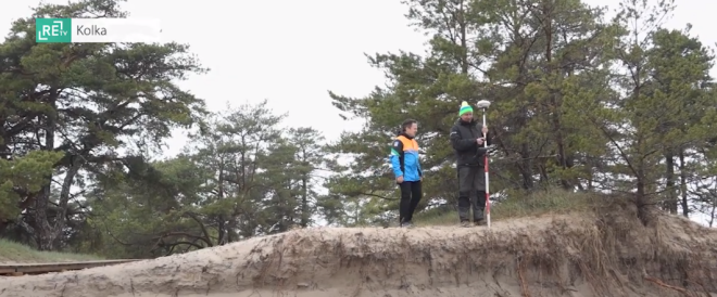 После последних штормов этой зимы у Яниса Думбитиса было ощущение, что снова потерян минимум гектар. На этот раз уникальный природный объект измерило ООО Ventspils mērnieks. "Для измерения используется стационарный GPS-приемник, который измеряет в режиме реального времени. Соответственно, создается новая работа. Записывается название, где мы находимся и что мы измеряем", - рассказывает Эдгар Удрис, сертифицированный землемер.