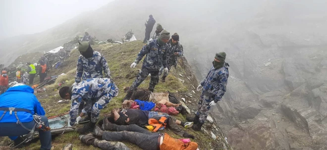 На месте крушения идет спасательная операция. "Уже найдено 14 тел, поиски остальных продолжаются, - сказал агентству France-Presse официальный представитель непальского агентства по гражданской авиации Део Чандра Лал Карн. - Погода очень плохая, но мы смогли доставить спасательную группу на место крушения".
