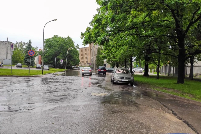 В Елгаве из-за сильного дождя временно для движения закрыты некоторые затопленные участки улиц и парк песчаных скульптур на острове Паста, сообщили в Елгавском муниципальном учреждении Pilsētsaimniecība.