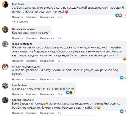 Рижане спрашивают - кто догадался устроить это мероприятие в центре города на Луцавсале, откуда звук добирается до многих районов города. Люди пишут, что бесплатную музыку было слышно до двух ночи в таких районах столицы, как Пурвциемс, Гризинькалнс, Кенгарагс, Саркандаугава и др.