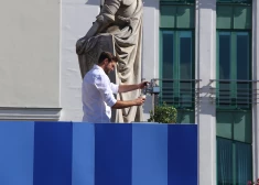 За происходящим на Домской площади следят сотрудники службы безопасности, которые в основном стоят у въездов. За происходящим также наблюдают несколько представителей полиции.