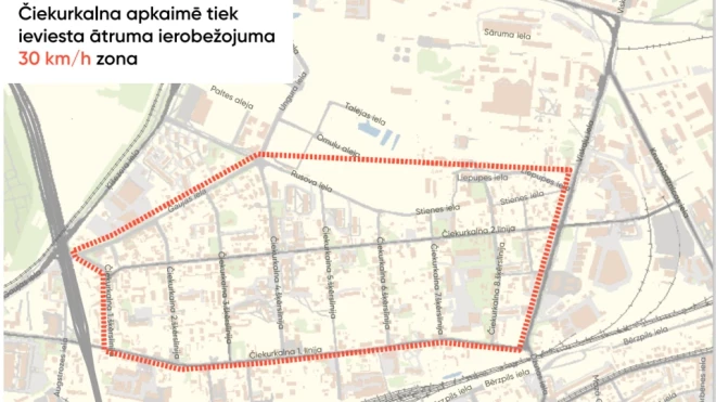На этой неделе в рижском микрорайоне Чиекуркалнс создается зона, где скорость движения будет ограничена тридцатью километрами в час, сообщает отдел коммуникации Рижской думы. Делается это для того, чтобы повысить безопасность пешеходов и других уязвимых участников дорожного движения и снизить уровень шума.