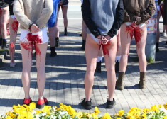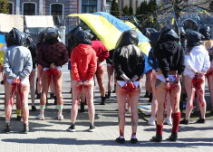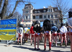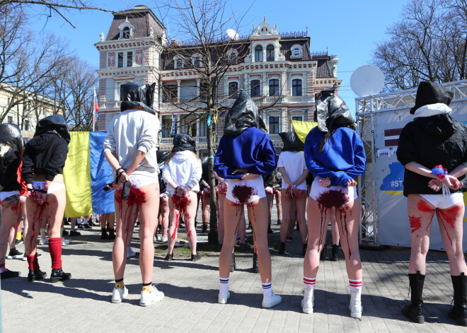 Rīgā pie Krievijas vēstniecības aizvadīta protesta akcija pret seksuālo vardarbību un kara noziegumiem Ukrainā, uz kuru bija sapulcējušās ap 100 ...