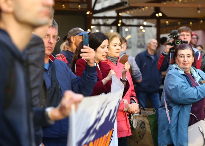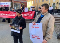 Люди пришли с флагами РСЛ, с громкоговорителями, из которых звучала, среди прочего, русская версия песни "Стена" группы "Пинк Флойд", которая уже многие годы используется на пикетах против перехода к образованию на латышском языке.