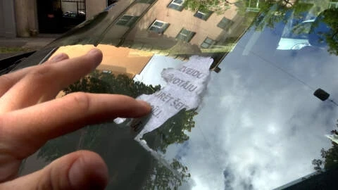 Парковочные войны в Риге: недоброжелатель приклеивает записки с угрозами на лобовые стекла авто с помощью суперклея