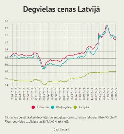 В Риге на АЗС Circle K на улице Краста цены на бензин 95-ой марки и дизельное топливо в пятницу выросли на 2,3% и составили 1,754 евро и 1,814 евро за литр соответственно.