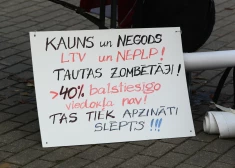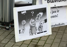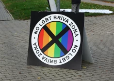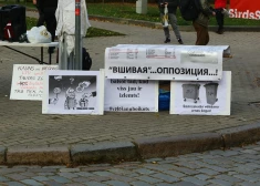 Недалеко от здания Сейма сегодня утром собралась группа активистов, которые в первый рабочий день новоизбранного парламента развернули плакаты на различные темы.