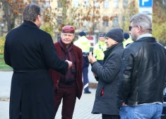 Небольшое количество людей с плакатами собралось недалеко от улицы Екаба, 11, чтобы выразить свое недовольство еще до первого заседания 14-го Сейма.