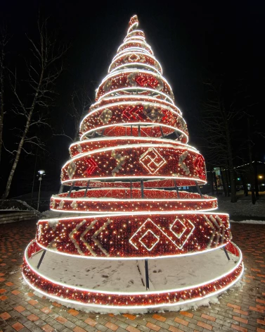 В этом году в парке Рембате города Лиелварде сияет стилизованная и красочная рождественская елка, рассказывающая об истории города и его уникальном культурном наследии. Дерево украшено лиелвардским поясом с этнографическим орнаментом, а рядом находится красочная аллея пояса. На дереве изображены такие знаки, как Огненный крест или Перконкрустс, который символизирует благословение, здоровье, процветание и защищает от зла; похожее на ужа божество Залктис символизирует жизненную энергию и мудрость; Солнце – гармонию, единство, безопасность и свет. В праздничном оформлении использованы цвета пояса – красный и белый.