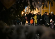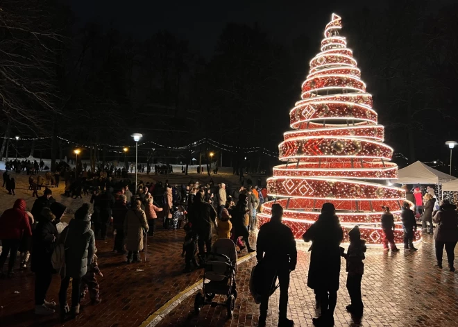 Многодетные семьи вместе с Эгилом Левитсом зажгли елку возле Рижского замка (2022)