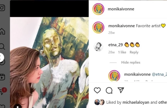 "Мой любимый художник", - гласит описание к фотографии Моники, на которой она позирует рядом с картиной Джереми. Они оба также опубликовали несколько совместных фотографий, на которых видно, как они хорошо проводят свободное время в Лондоне.