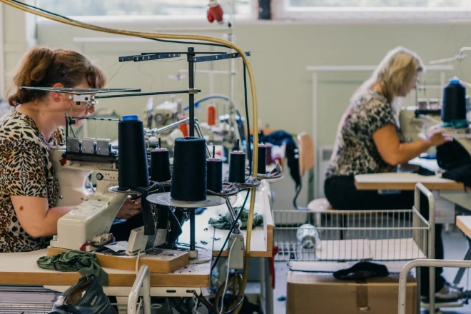 Александр Сазонов развеивает устоявшиеся представления о том, что швея — профессия низкоквалифицированная, а на пошиве одежды много не заработаешь. Он говорит: "Минимальная зарплата в стране — 620 евро, а у наших швей — 800 евро. Средняя брутто-зарплата швеи как в Риге, так и в Литве составляет более 1000 евро. Плюс после трех месяцев работы мы покупаем медицинскую страховку и компенсируем расходы на проезд до работы".