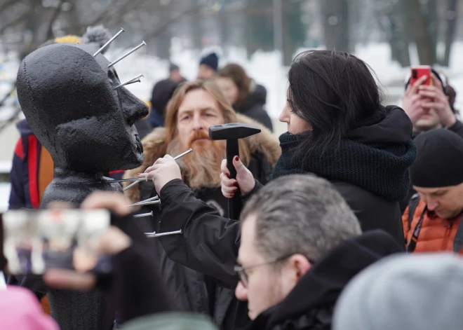 Сегодня, 24 февраля, в годовщину нападения России на Украину, у посольства России в Риге прошла делегированная художником Артуром Берзиньшем художественная акция "Инвольтация" (обряд насылания порчи - термин, возникший в оккультных кругах в средние века).