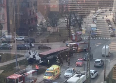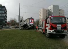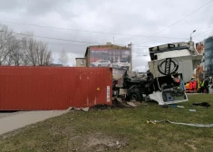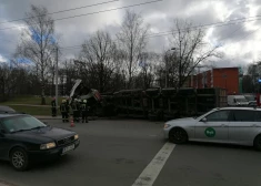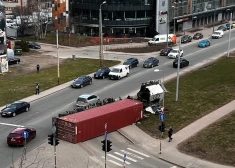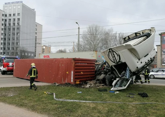 В среду утром в Риге произошла авария с участием грузовика, в результате которой контейнер перевернулся.