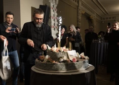 Посетители и банкет на премьере "Гамлета" в постановке Виестурса Кайришса в апреле 2023 года.