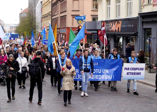 Как сообщалось, сегодня в Риге прошло многотысячное шествие протеста учителей, к которым присоединились и медики. Многие учебные заведения также участвуют в организованной ЛПРОН трехдневной забастовке.