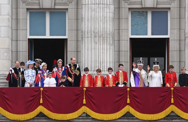 Во дворце королевская семья вышла на балкон и поприветствовала собравшихся у резиденции в новом статусе. На балконе были король и королева, принц Уильям и Кейт Миддлтон, принц Джордж, принцесса Шарлотта, принц Луи, а также принцесса Анна и принц Эдвард.