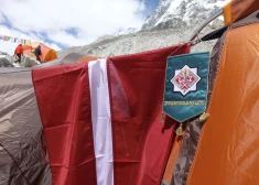 "Сделано! Выше уже некуда подниматься": альпинисты развернули флаги Латвии и Украины на Эвересте
