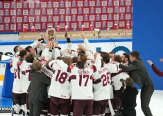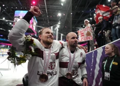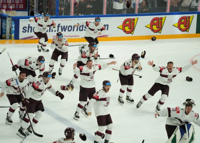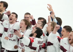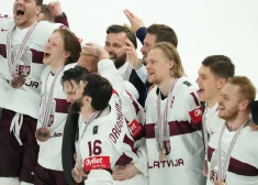 Сборная Латвии празднует бронзу на чемпионате мира 2023