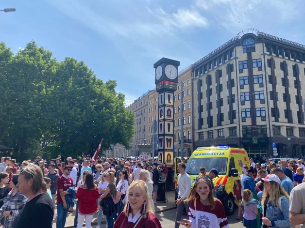Латвийская федерация хоккея (ЛФХ) призывала болельщиков в понедельник встретить сборную Латвии по хоккею после ее самого успешного выступления на чемпионатах мира не в аэропорту, а у памятника Свободы в Риге. В 10:00 к нему уже пришли первые болельщики. К часу дня на площади и прилежащих улицах и парках были уже десятки тысяч людей!