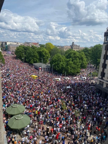 Ближе к 13.00 поток людей парализовал улицы вокруг площади у памятника Свободы, начиная от Центрального вокзала, Верманского сада и в других направлениях. Общественный транспорт был забит людьми.