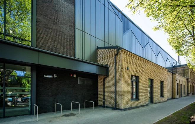 Говоря о проекте нового здания магазина, архитектор Андрис Берзиньш из ООО Archab подчеркивает: "Цветовая гамма нового объема здания была разработана максимально уравновешенной, без лишних акцентов, но в то же время пропорции плоскостей фасада очень продуманы и сбалансированы, а зигзагоообразный силуэт крыши и кирпичная облицовка напоминают об исторической связи с бывшим индустриальным районом, в который вдохнули новую жизнь. Уважая индустриальное прошлое, в проекте использовали навесные фасады из декоративного кирпича, с ритмичными выступами. Учитывая требования градостроительства и сохранения стиля традиционной застройки, мы создали абсолютно уникальное здание, гармонично вписавшееся в этот квартал".