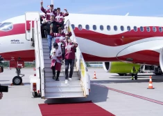 Встреча сборной Латвии по хоккею в аэропорту "Рига" после ЧМ-2023