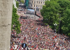 Тысячи людей пришли к памятнику Свободы чествовать сборную Латвии - бронзовых призеров ЧМ-2023 по хоккею