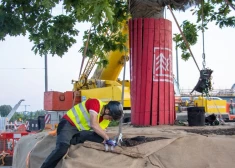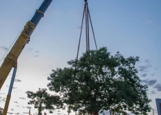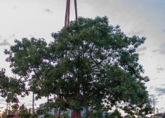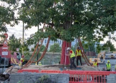 В ночь с 13 на 14 июня красный дуб, растущий у Рижского международного автовокзала, был пересажен на новое место на набережной Генерала Радзиньша.