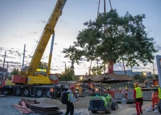 ВИДЕО: ночью 50-тонный дуб с Рижского автовокзала был пересажен на новое место