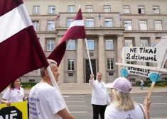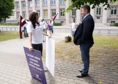 Среди пикетчиков - политики Юлия и Вячеслав Степаненко. Протестующие принесли латвийский флаг и плакаты, призывающие спасать детей и остановить идеологию ЛГБТК+, а также напоминающие, что в прошлом году в Латвии более 58 000 жителей подписались "за закрепление определения естественной семьи в Конституции ЛР".