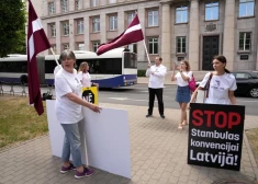 В четверг утром около 15 человек собрались перед зданием Кабинета министров на пикет, организованный партией "Суверенная власть" против присоединения Латвии к так называемой Стамбульской конвенции.