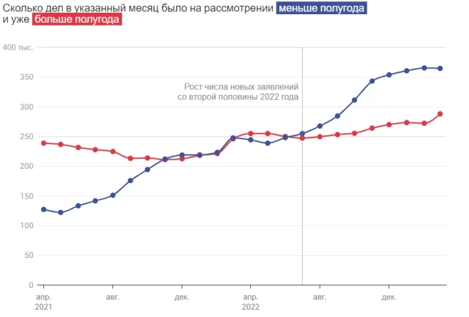 После подачи заявления об убежище непростой путь к получению статусу беженца в странах Европы только начинается. Согласно данным Европейского агентства по делам беженцев (EUAA), к концу марта 2023 года в ЕС ожидали рассмотрения 664 тысячи дел о получении убежища. В половине случаев срок ожидания составляет уже больше полугода. В 2022 году количество таких затянувшихся рассмотрений увеличилось примерно на 15%, хотя основная «пробка» сформировалась из-за новых заявлений.