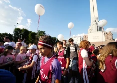 Тысячи людей пришли к памятнику Свободы чествовать сборную Латвии - бронзовых призеров ЧМ-2023 по хоккею