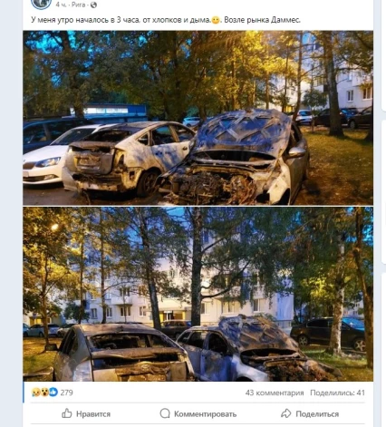 "Обалдеть, почему в Иманте так часто горят машины. Печально", "Опять. У подруги год назад подожгли машину", "Кому-то делать нечего, развлекаются детишки. В Ильгюциемсе на прошлой неделе переднее стекло разбили, все в трещинах и капот во вмятинах", - отозвались комментаторы.