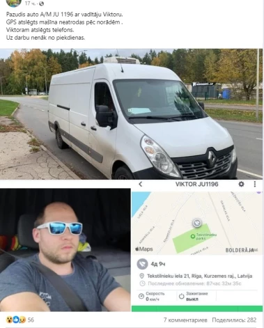 Сегодня поиском пропавшего Виктора (1987 года рождения) занялась и полиция. "Мужчину в последний раз видели 17 октября этого года, и он передвигался на автомобиле Renault Master с государственным регистрационным номером JU1196. Мужчина не явился на работу и не дал о себе знать".