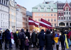 В Риге несколько сотен человек собрались у памятника Свободы в поддержку Украины, где третий год идет полномасштабная война.