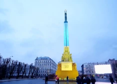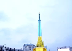 Памятник Свободы подсвечен в цветах флага Украины (24.02.24)