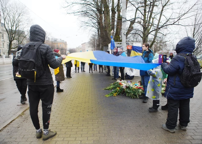24 февраля, в годовщину войны в Украине, в Риге прошло множество мероприятий: были концерты, митинг, акция протеста, шествие. Утром неравнодушные люди собралась возле посольства России, чтобы выразить свое возмущение происходящим.